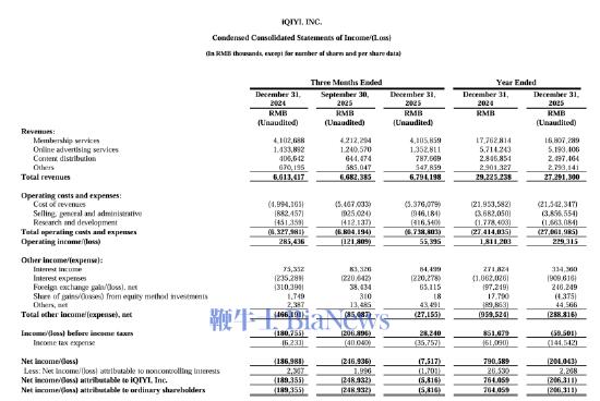 昨晚,爱奇艺交出了一份休戚各半的年度成绩单。