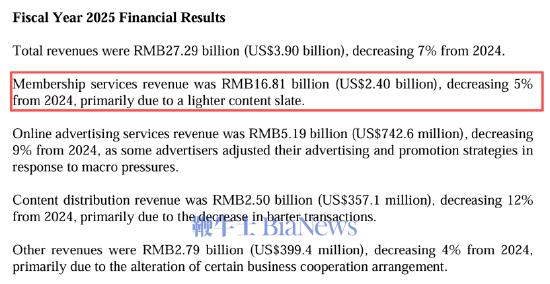 更愁的是会员作事的下滑。财报显现,2025年其会员作事收入为168.1亿元,同比下滑5%。当作第二大板块,在线告白作事相似面对下滑压力,2025年营收为51.9亿元,同比下滑9%。
