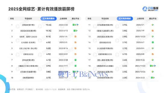而2025年全网网罗综艺灵验播放霸屏榜前10部综艺中,爱奇艺独播的《种地吧3》《笑剧之王单口季2》上榜,灵验播放量分离为4.1亿和3.9亿。不外,当作“综N代”,两个IP续作播放量均有所下滑,2024年《种地吧2》和《笑剧之王单口季》播放量分离为5.6亿和4.7亿。