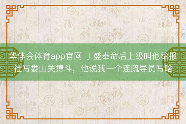 华体会体育app官网 丁盛奉命后上级叫他给报社写娄山关搏斗,他说我一个连疏导员写啥