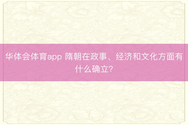华体会体育app 隋朝在政事、经济和文化方面有什么确立?
