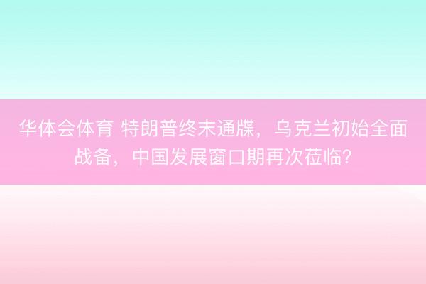 华体会体育 特朗普终末通牒,乌克兰初始全面战备,中国发展窗口期再次莅临?