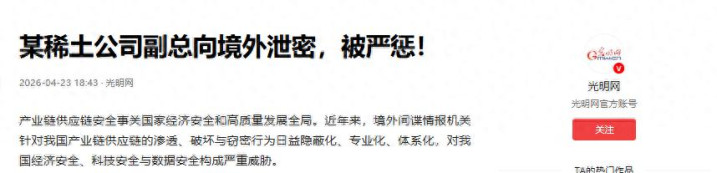 某稀土公司副总向境外泄密华体会体育app官网,被重办!——2026-04-23 18:43光明网